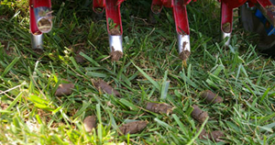 Even with the best care available, lawns can thin out and lose color due to excessive thatch build-up, hard or compacted soils, or periods of high temperature, high humidity, or drought (sounds a lot like what we experience here every year). Aerifying is recognized by turf experts such as golf course superintendents as the best treatment to control thatch, reduce compaction, help fill-in bare spots and revitalize growth.